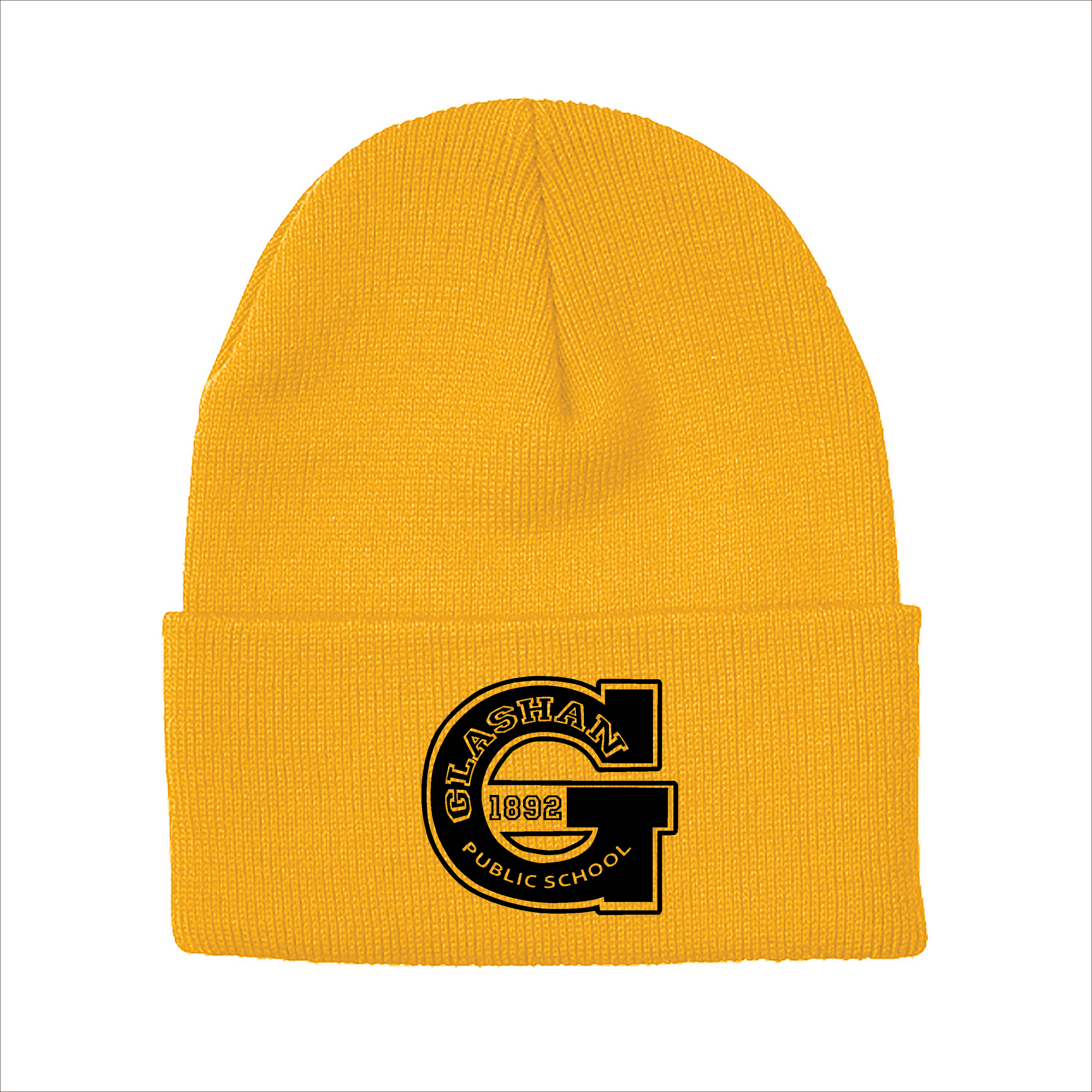 Comes with the Glashan Public Elementary School logo embroidered on the cuff of the toque.