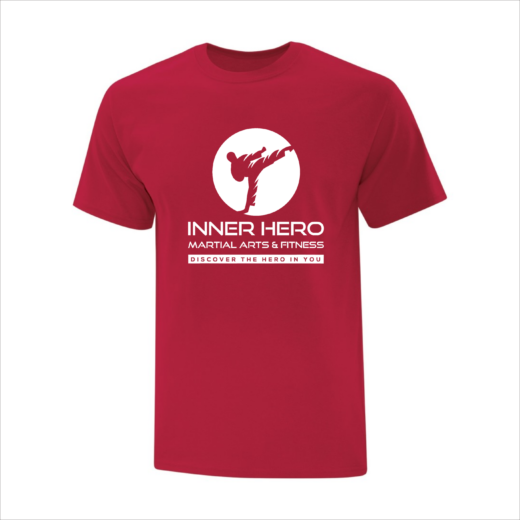 Comes with the Inner Hero Martial Arts logo printed on the front of the shirt and the slogan printed on the back.