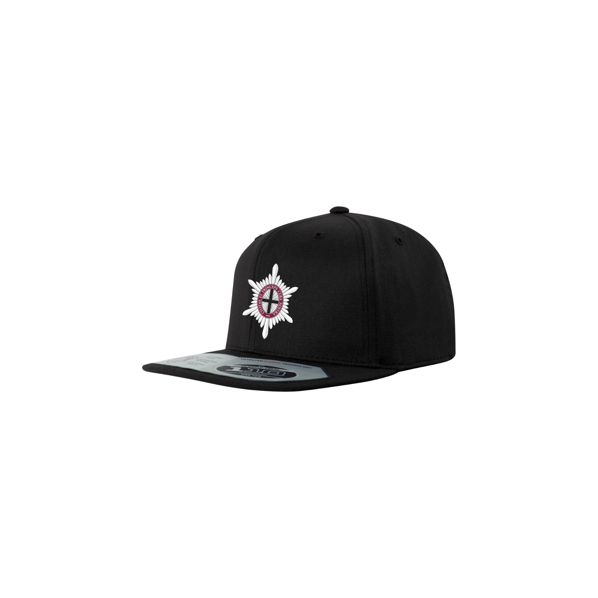 Black 6 baseball hat. 83/15/2 acrylic/wool/spandex blend. Adjustable snapback closure.